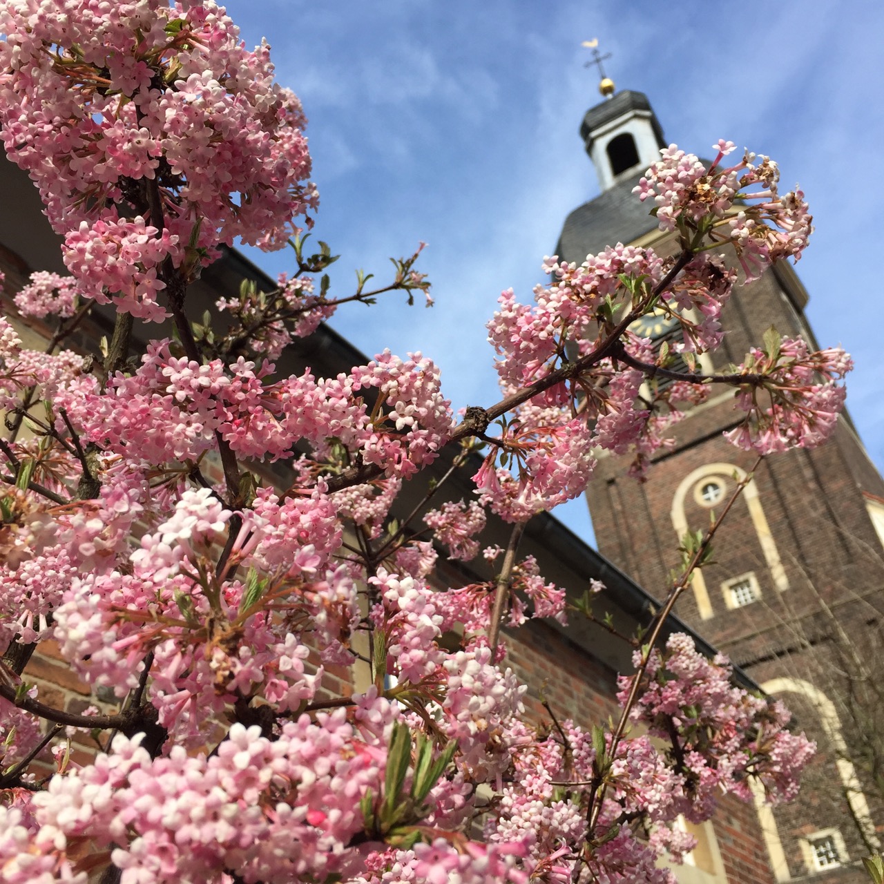 Wir waren erst im Ort, wo ich diesen schönen, blühenden Busch entdeckt habe. Mit dem Kirchturm im Hintergrund ein tolles Motiv, oder? Irgendwie ist der Frühling doch die schönste Zeit im Jahr, oder?