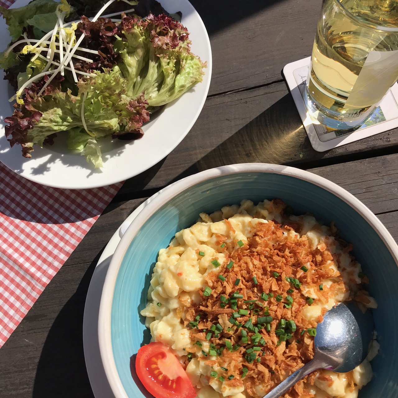 Ich bin ja auch ein Fan der bayrischen Küche. Alpen ohne hochkalorische Verköstigung gehen nicht. Jedenfalls für mich nicht. Diät kann ja jeder machen wie er will, aber nicht in den Bergen. Außerdem: Wer viel läuft, muss auch gut essen. An die Regel hab ich mich gehalten. 😉