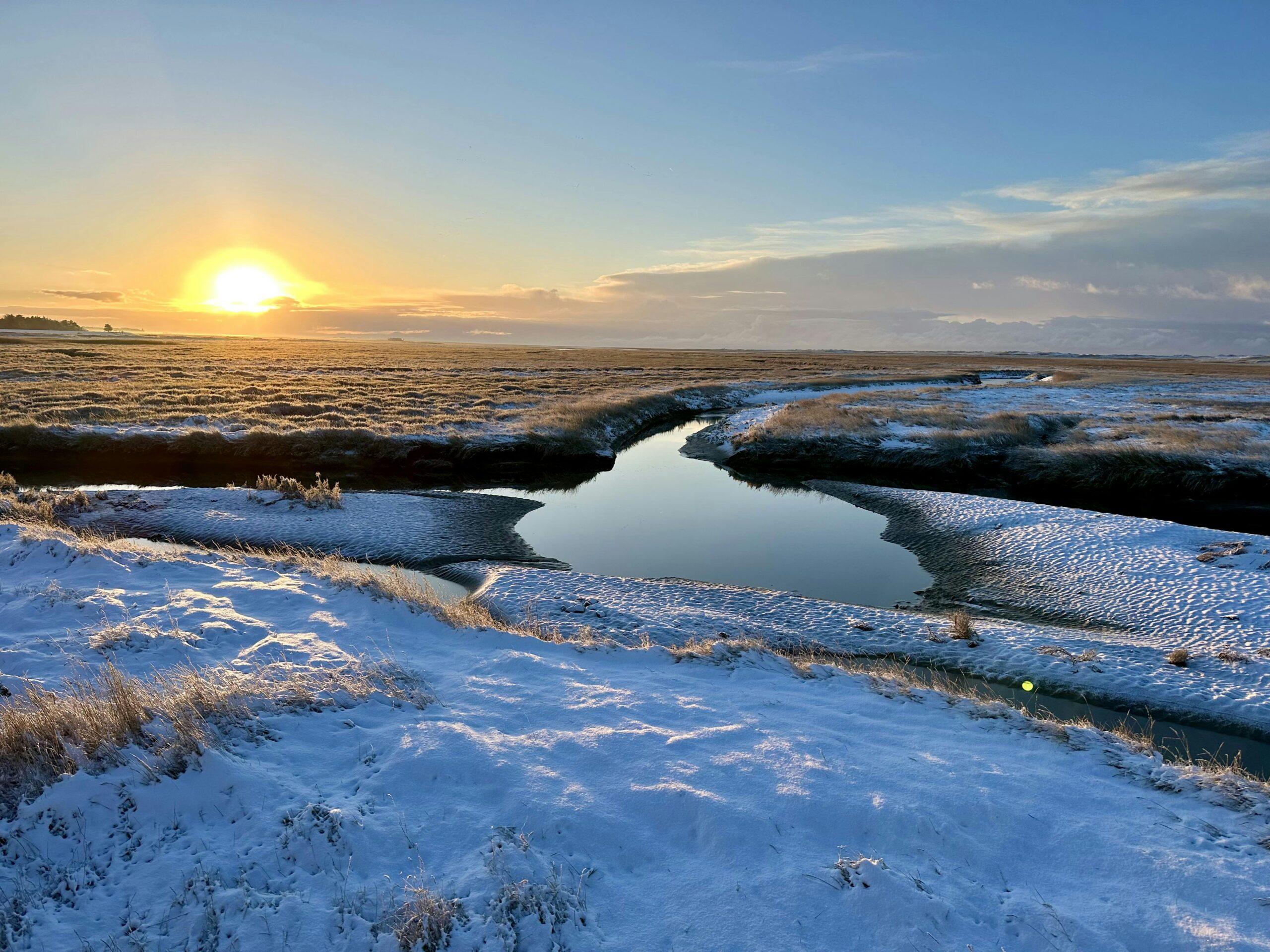 Schon der Weg am Sonntagmorgen über die Seebrücke war toll. Die Sonne ging grad auf und schickte so schönes Licht über die verschneiten Salzwiesen.