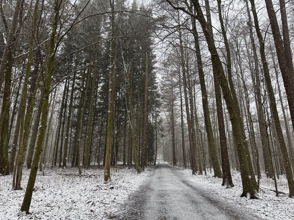 Auf unserer Waldrunde schneite es lustig vor sich hin und wir wurden von dicken Flocken durch die Landschaft begleitet.