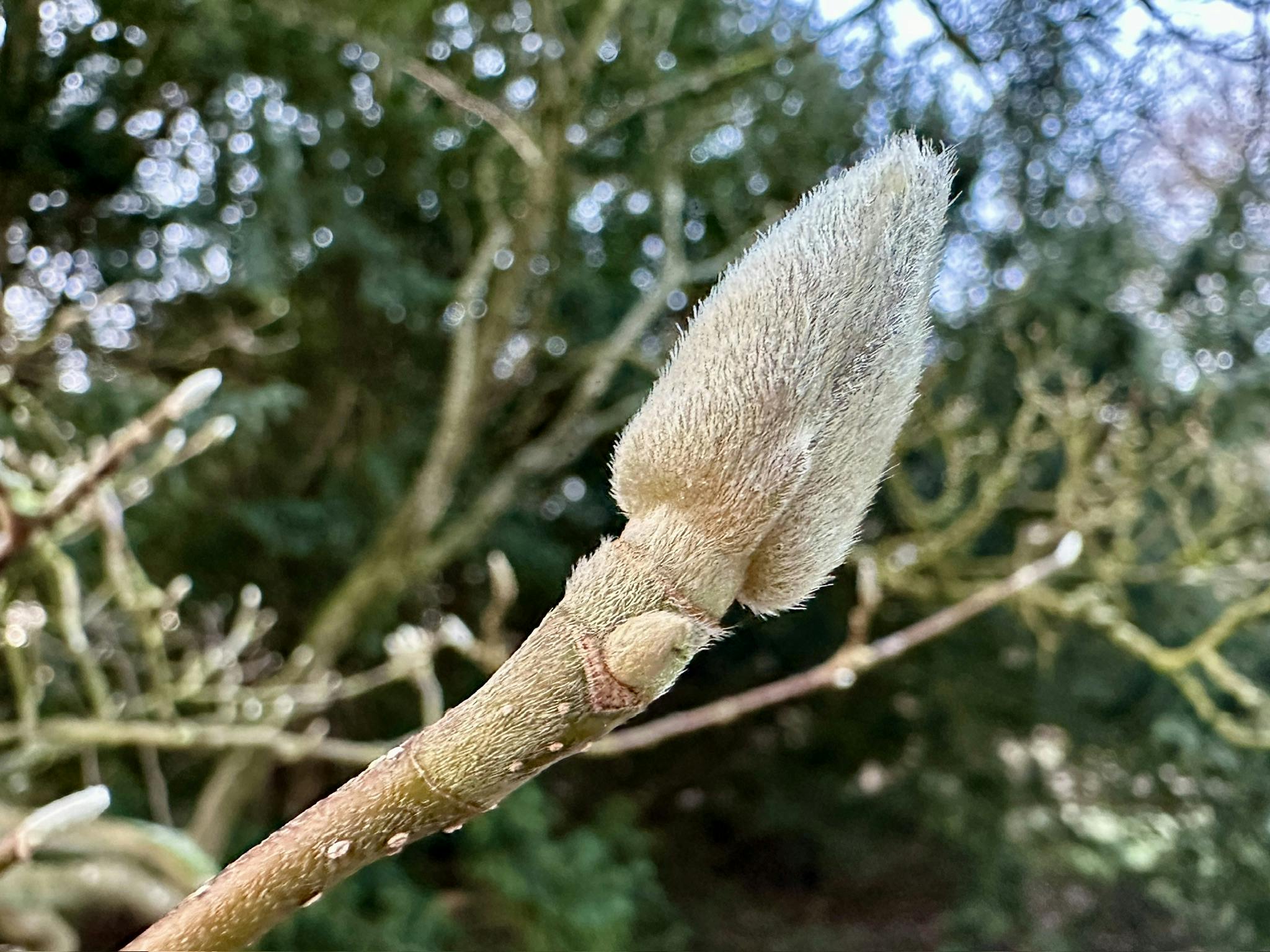 Die Knospen der Magnolien sind noch dick eingepackt in ihre puscheligen Mäntel. Aber sie sind schon so prall, dass es nicht mehr lange dauern wird, bis sie die abwerfen.