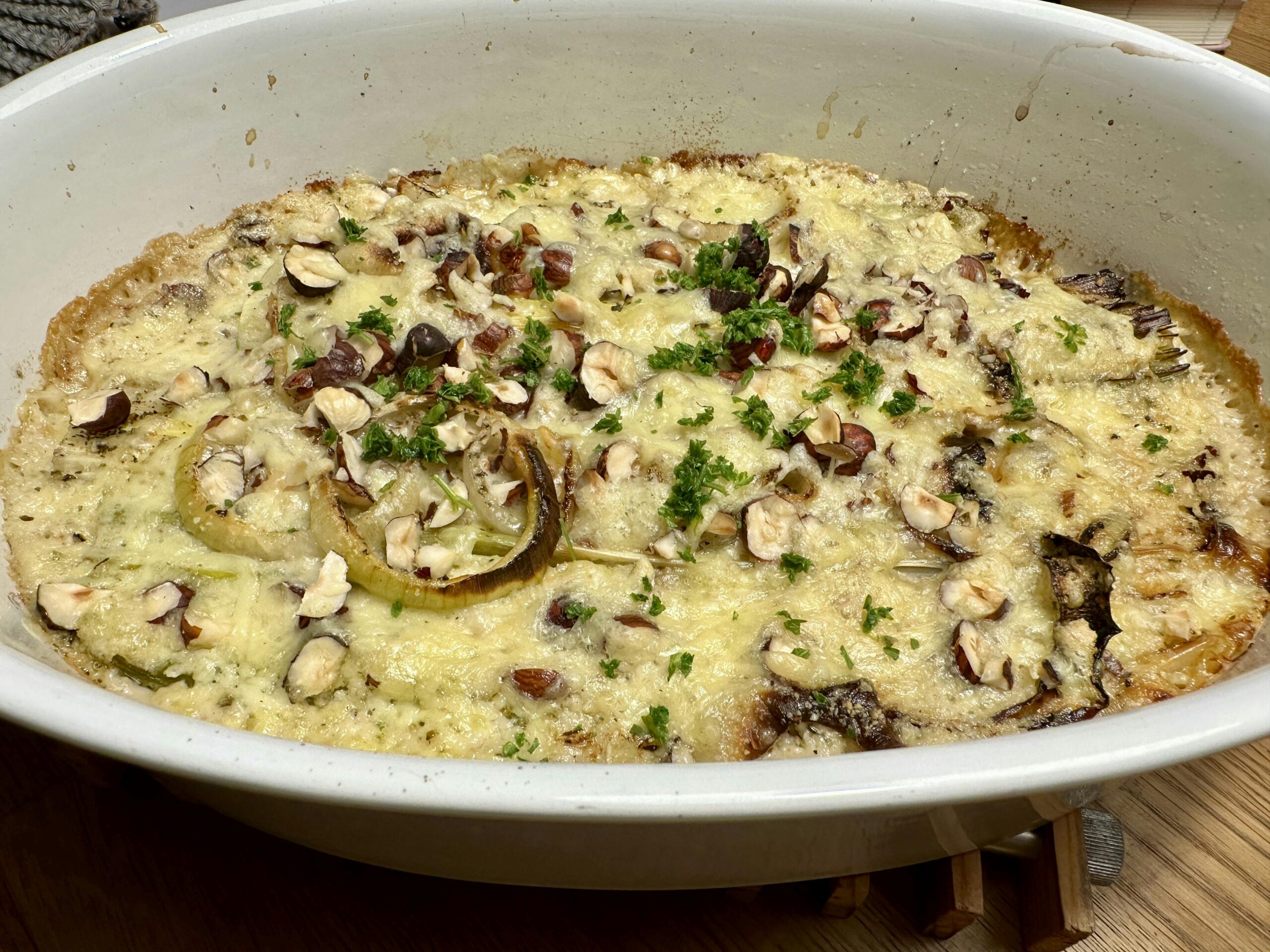 Gratinierter Lauch mit Haselnüssen