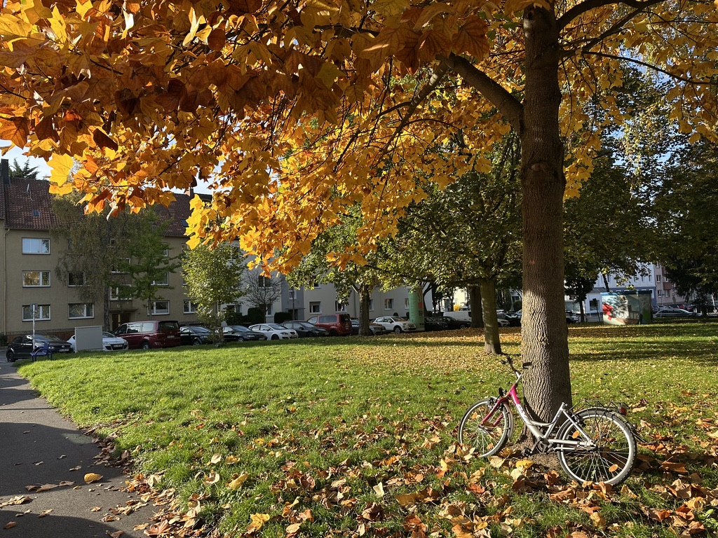 Bei der nachmittäglichen Runde durch’s Viertel war ich hin und weg von dem leuchtenden Gelb der Bäume vor dem blauen Himmel.