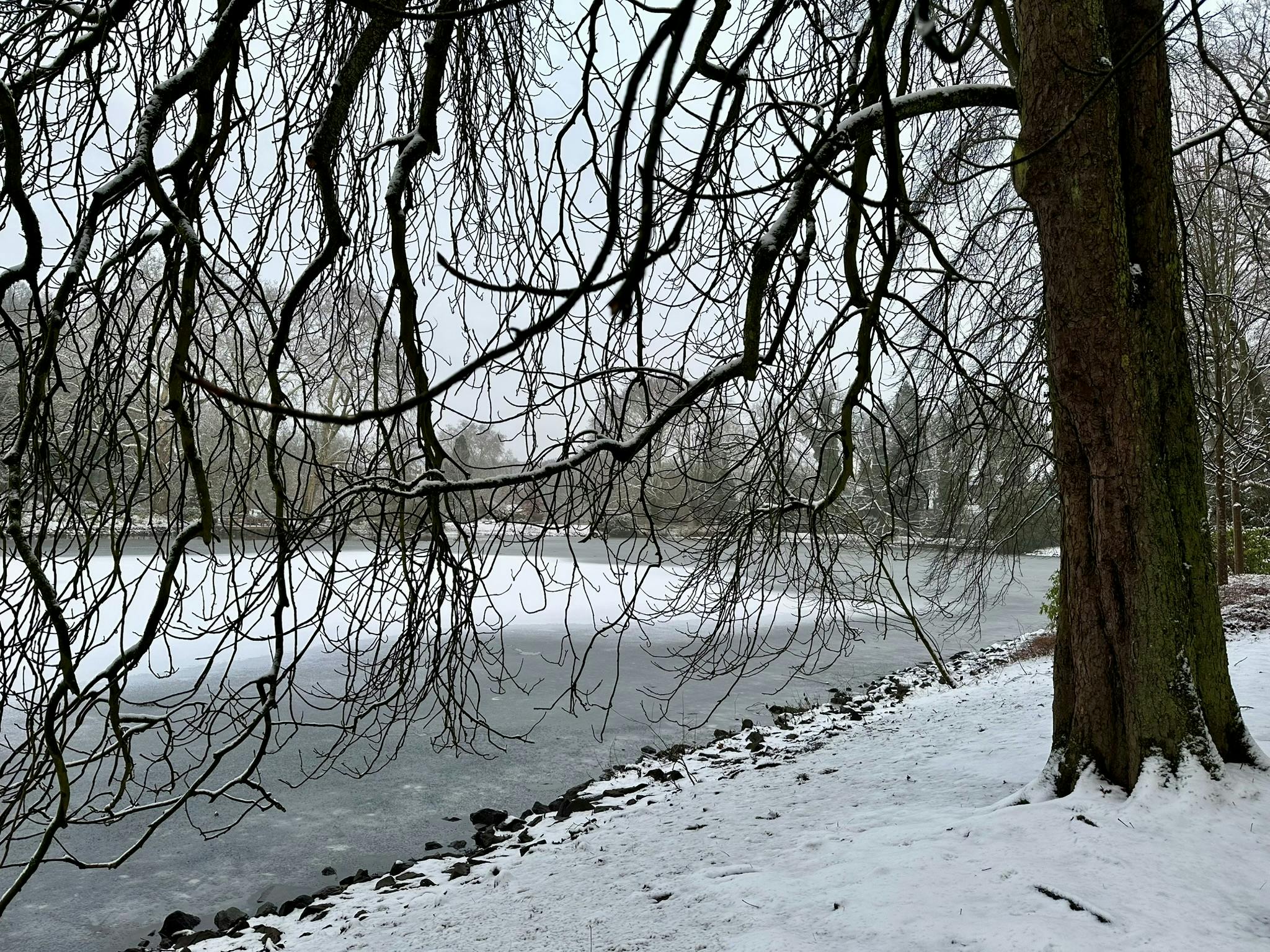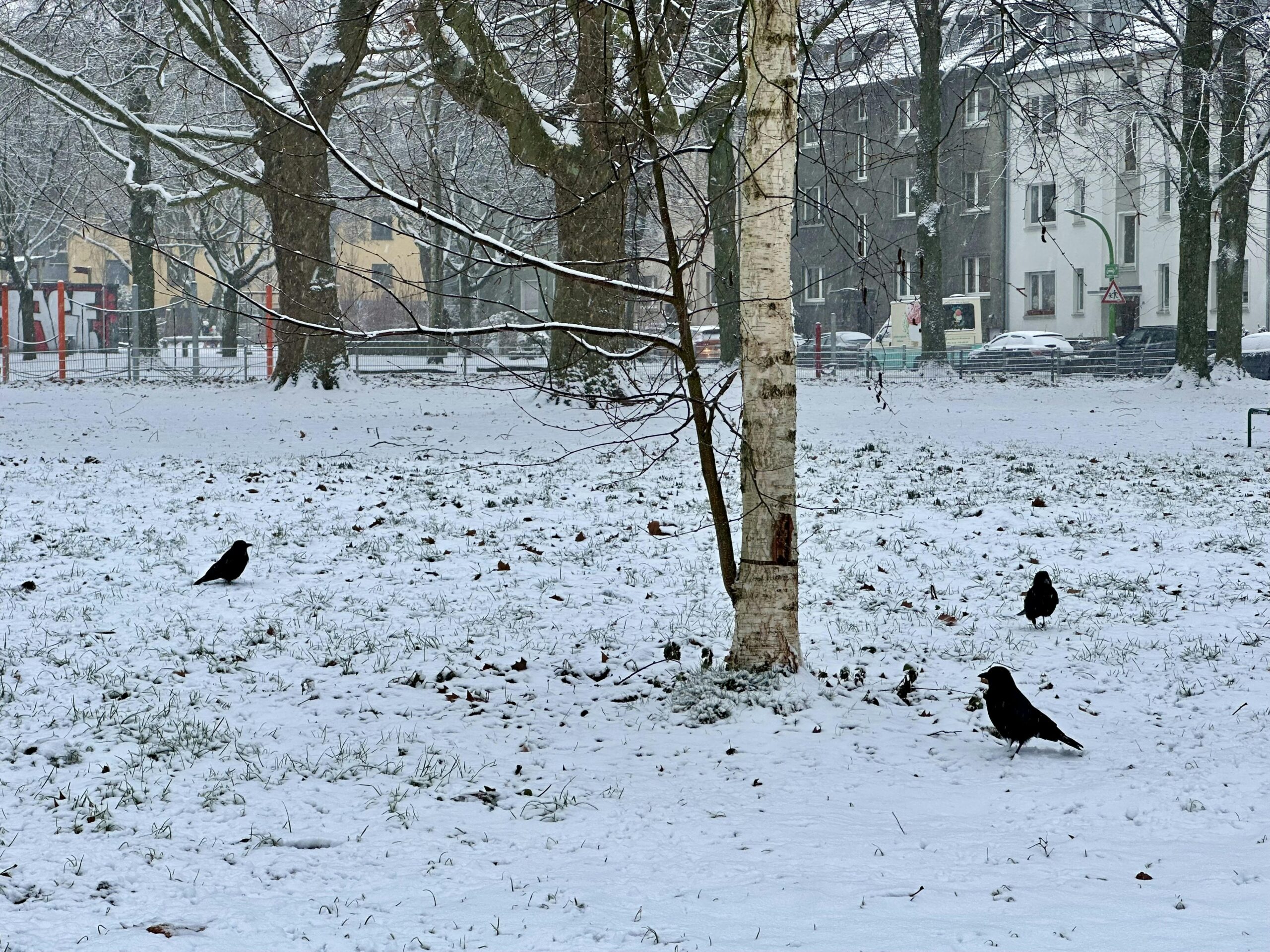 Selbst in der Stadt lag Schnee bei der nachmittäglichen Hunderunde.