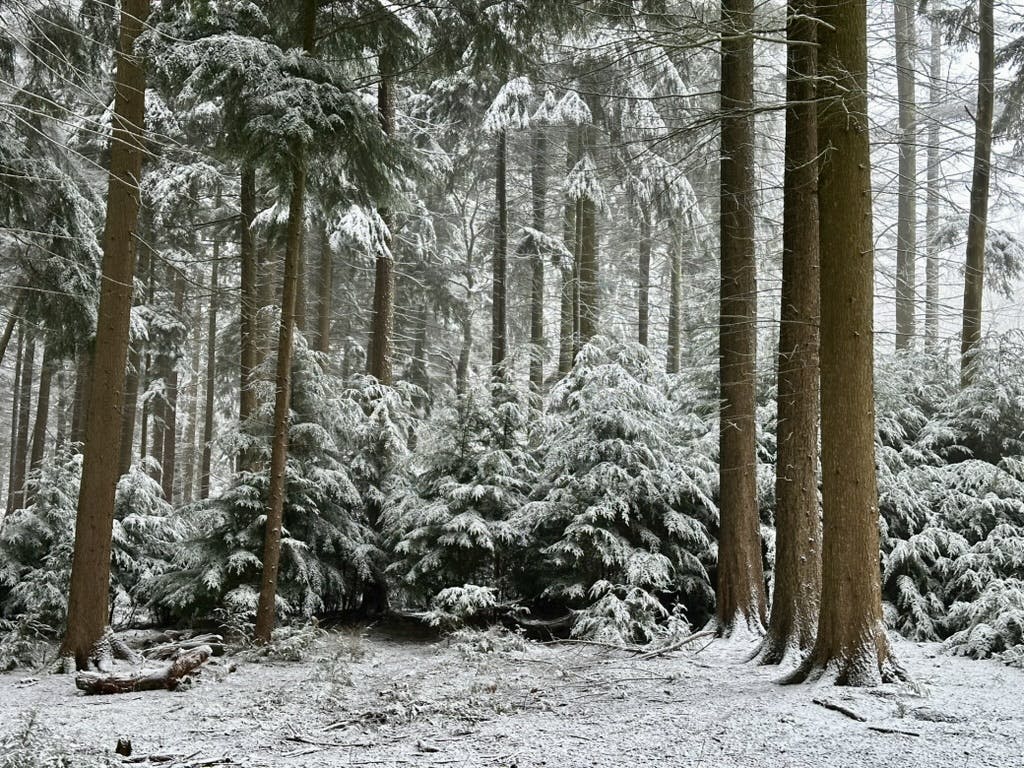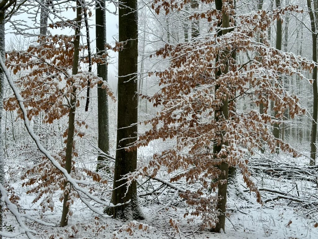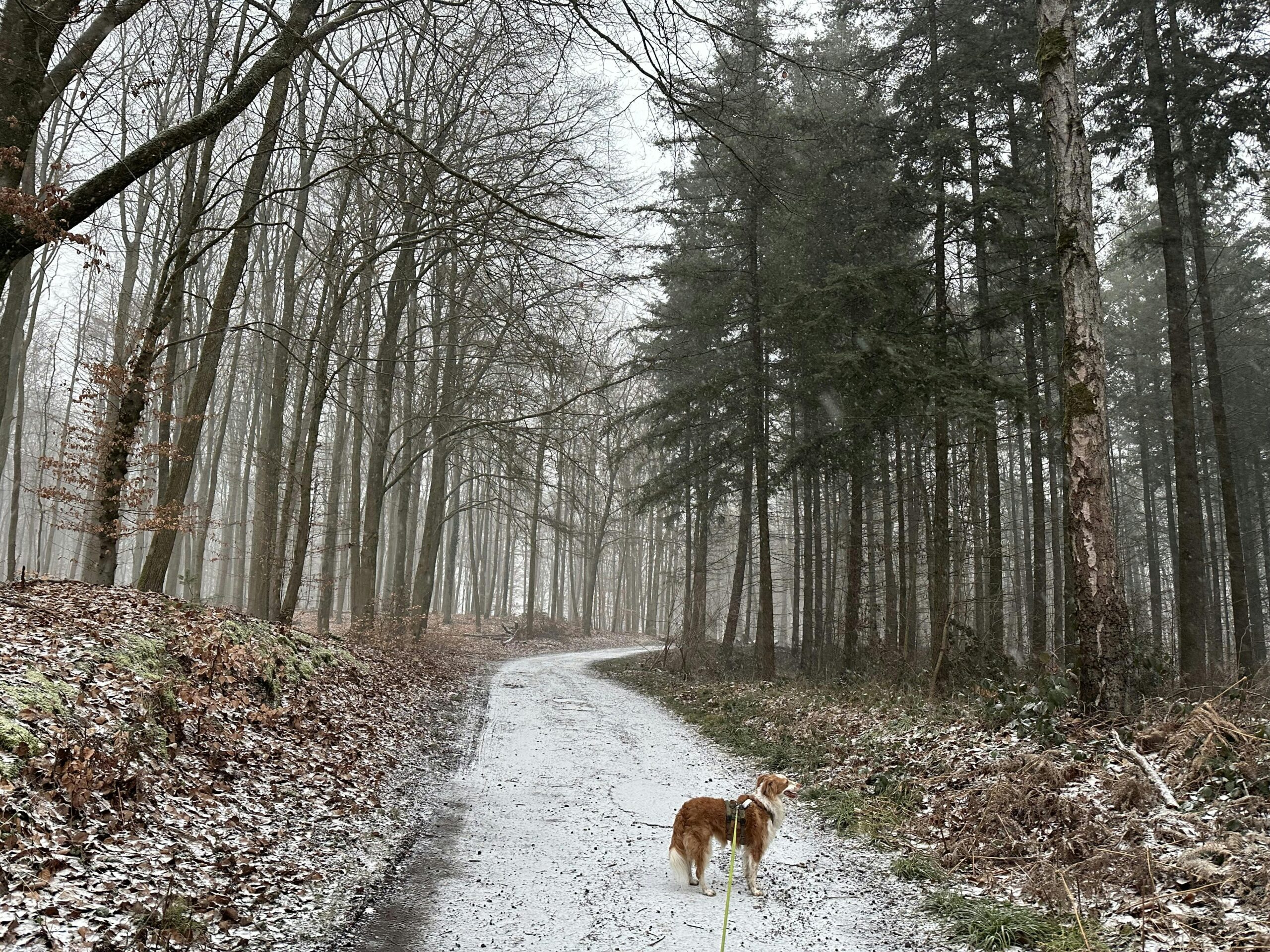 Am Montagmorgen hatte es ganz leicht geschneit und wir hatten eine gezuckerte Kulisse für unsere Hunderunde im Wald.