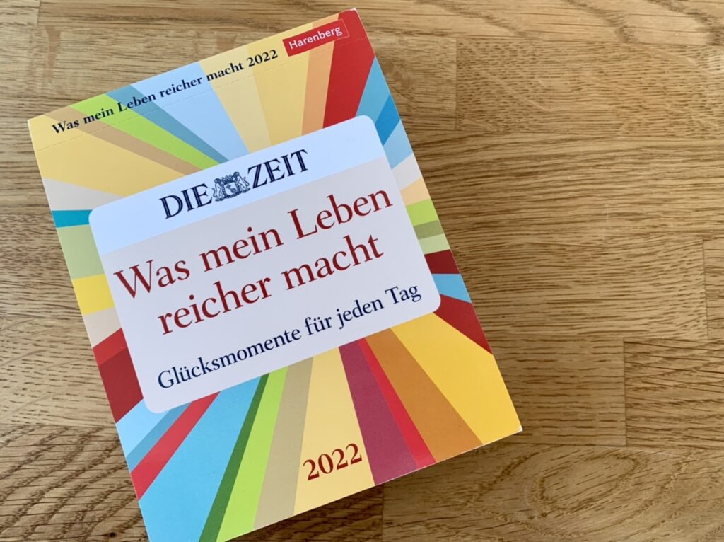 Janine hat mir dann doch bei ihrem letzten Besuch ein Präsent hier gelassen mit den Worten, dass ich es erst am 24.12. öffnen darf. Ich habe bestimmt sehr streng geguckt, habe mich aber dann gefügt und mich sehr gefreut, als ich es Weihnachten dann ausgepackt habe. Es ist nämlich ein Tisch-Kalender von der Zeitung „Die Zeit“ mit Glücksmomenten. Der Kalender hat ein Kalenderblatt für jeden Tag und darauf finden sich Glücksmomente der Leser*innen der Zeit. Was für ein tolles Geschenk! Ich freu mich voll drauf!