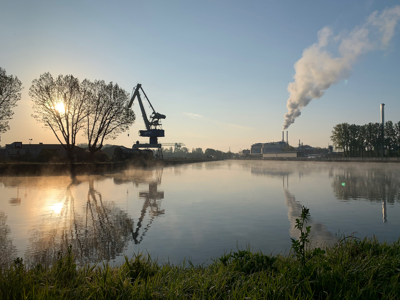 Und am Kanal hatte ich wunderbare Ausblicke. Die Sonne stand noch recht tief, so dass das Licht so schön war. Und es lag noch Frühnebel auf dem Wasser. Bei etwa 8 Grad auch kein Wunder. Ein Traum!