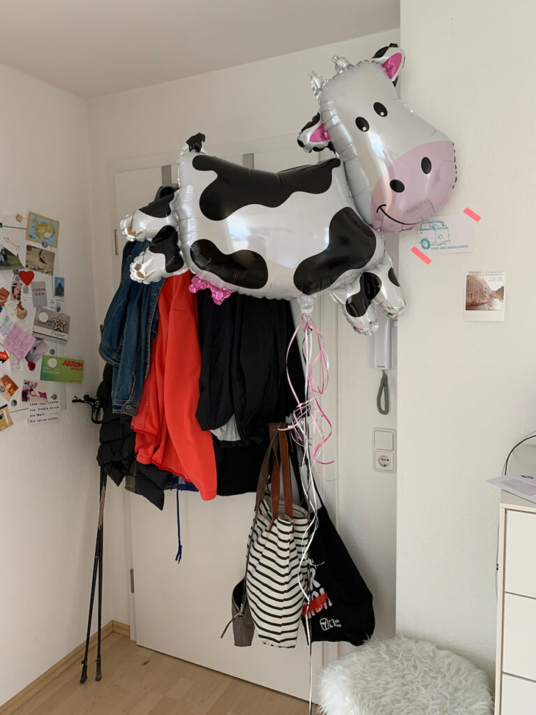 Ich hatte einen Tag vorher eine Ballon-Kuh besorgt, quasi als Gruß aus Oberstdorf, Elke hatte Muffins gebacken und meine Eltern den Sekt kaltgestellt.