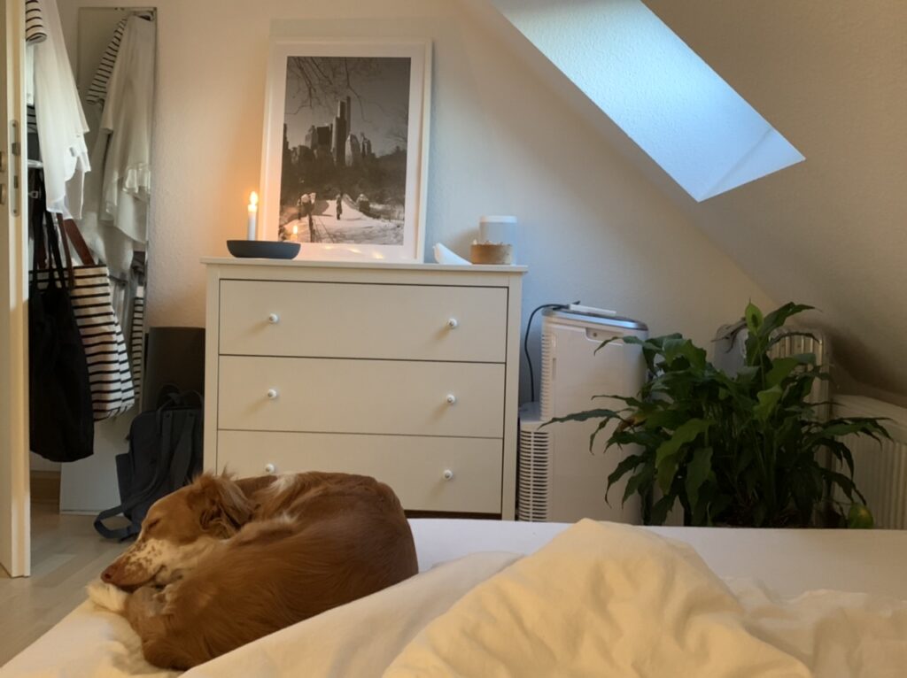 Mit den Kerzen ist es dann besonders gemütlich. Und mit dem kleinen Hund am Fußend ist das doch eigentlich gar nicht mehr zu toppen, oder?