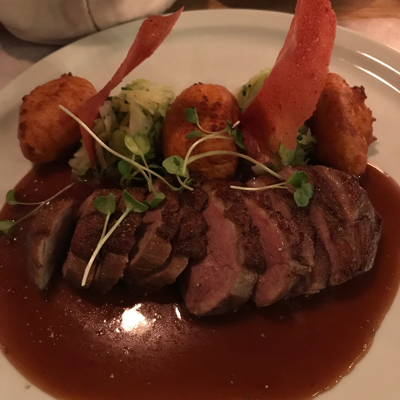 Anschliessend waren wir dann noch in der Lokalmanufaktur und haben was Leckeres gegessen. Ich hatte Ente in Rotweinsud mit Spitzkohl und Süsskartoffeln. Sehr lecker und schön war das!