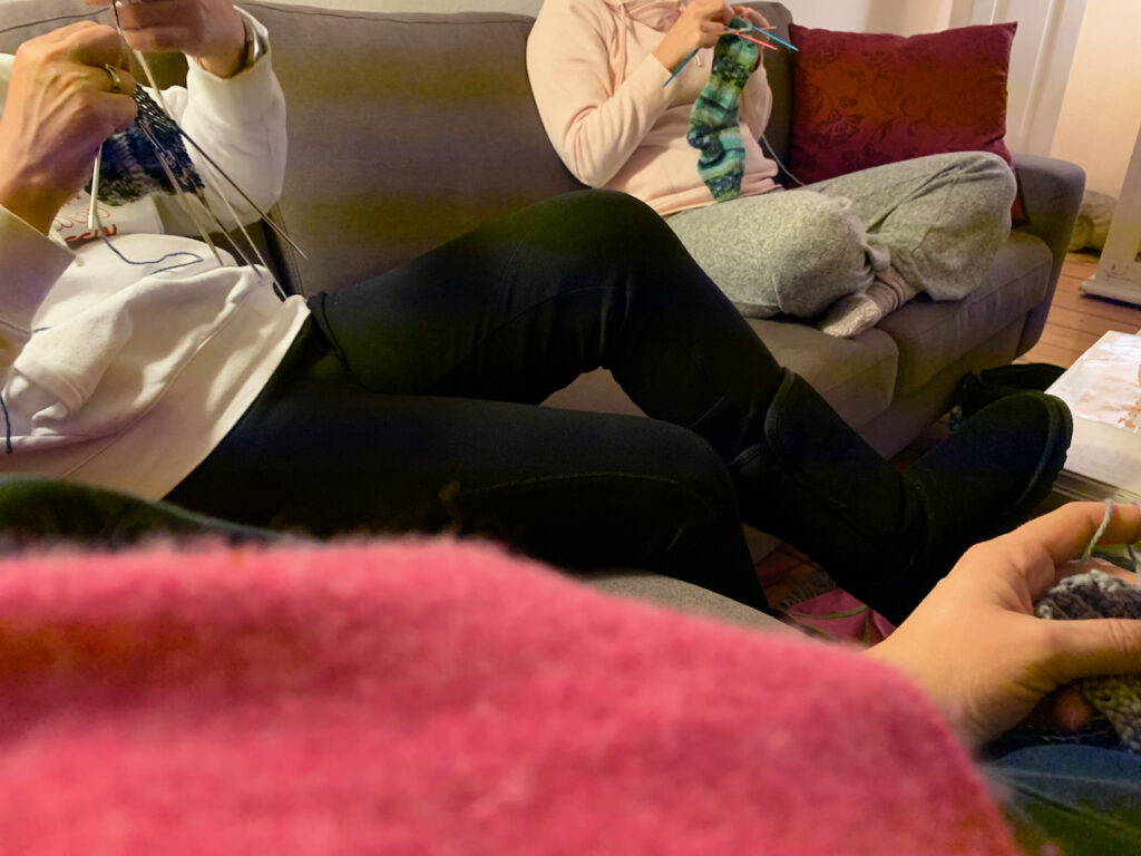Zwischendurch treffe ich mich immer mal wieder mit Marie und Anja und wir stricken gemeinsam, sitzen in gemütlichen Klamotten auf der Couch, werkeln so vor uns hin und quatschen über Gott und die Welt. Das ist immer so entspannt und die Nachmittage sind dann immer Zeiten mit hohem Auftankpotential. Diesmal war es tatsächlich schon 23 Uhr, als wir uns dann auf den Weg gemacht haben. Irgendwie hatten wir die Zeit total verpasst…