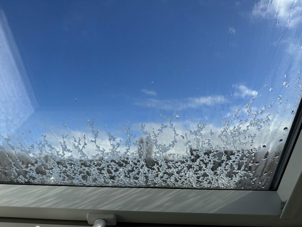 20 Minuten später war alles schon wieder vorbei und die Sonne schien bei blauem Himmel. Nur die paar Reste von Schnee und Hagel auf dem Dachflächenfenster zeugten noch von der vorherigen Weltuntergangsstimmung.