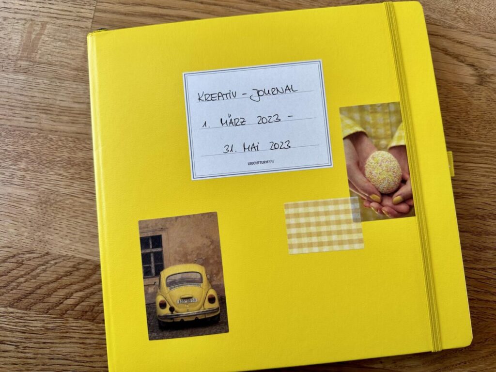 Apropos Kreativ-Journal: Diese Woche habe ich mein altes Journal abgeschlossen und ein neues begonnen. Das neue kommt nun in frühlingshaftem Gelb daher und macht einfach gute Laune und Vorfreude auf die kommenden, hellen Tage.