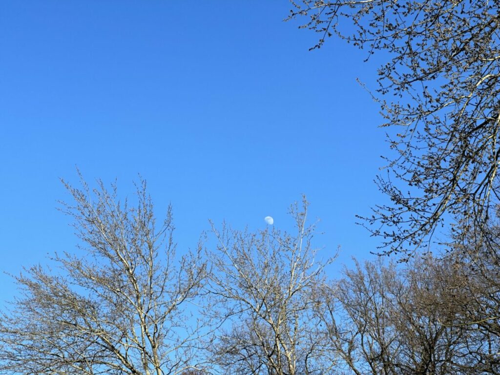 Und kurz drauf habe ich dann noch den Mond am strahlend blauen Himmel entdeckt.