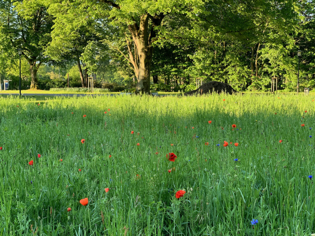 Und dabei freu ich mich auch total, dass die Stadt jetzt öfter Blumenwiesen anpflanzt. In dem Park, den ich mit Lise täglich besuche, gibt es jetzt eine riesige Wiese mit Wildblumen. Der Mohn wächst grad heran und ich freu mich total drüber.