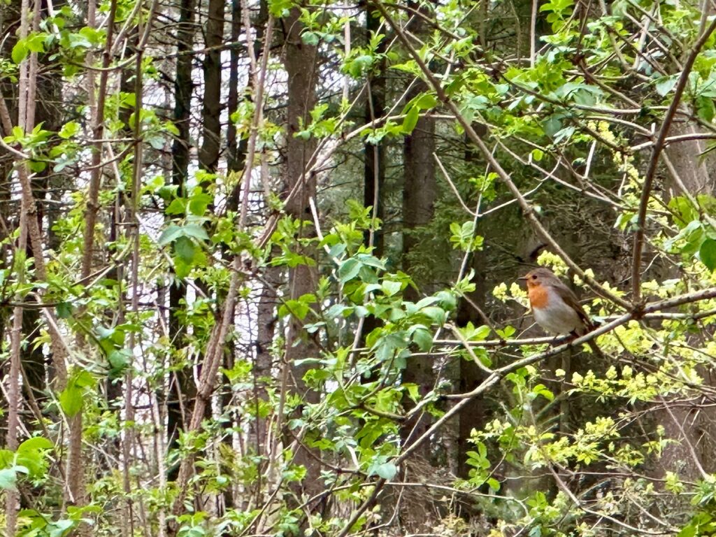 Am Samstag konnte ich so ein Rotkehlchen beobachten, das in einem Holunderstrauch am Wegrand saß. Ich bin ja immer wieder fasziniert, wie schön diese hübschen Lebewesen singen können und welche Lautstärke diese kleinen Körper produzieren. Auf englisch heißt das Rotkehlchen übrigens „robin“. Das finde ich niedlich und so passend.