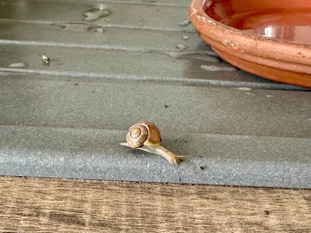 eine Schnecke auf dem Balkon ist klasse. In unserem Garten wohnen unzählige Weinbergschnecken. Ich mag die soooo sehr. Spannend wie viel weiter die Natur bei dir ist. Hier öffnen sich gerade ganz vorsichtig die Knospen des Spitzahorns und an den Birken kann man erstes Grün erahnen.