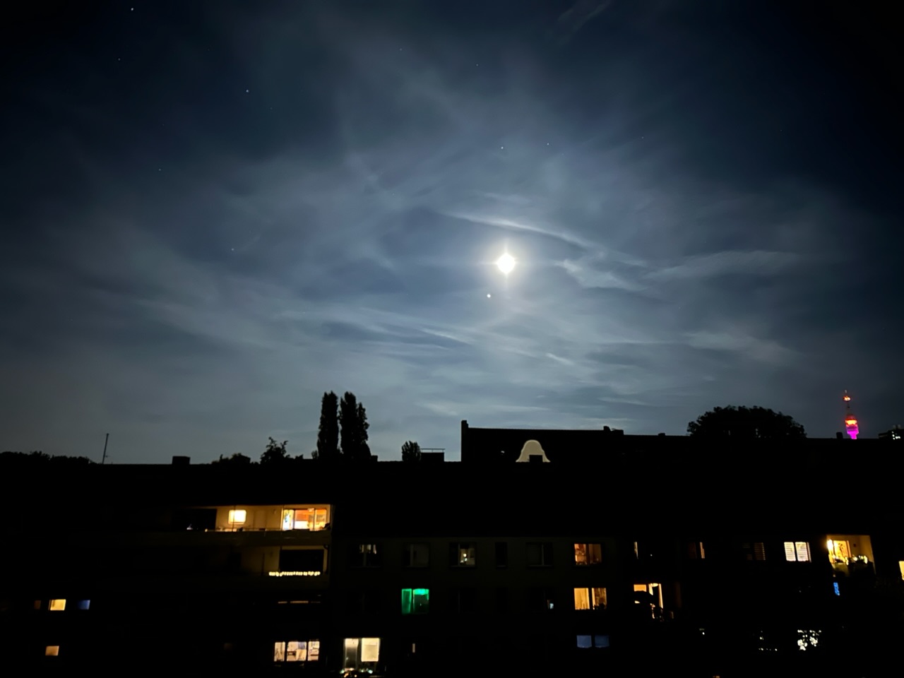 - Abends den noch ziemlich vollen Mond am Himmel beobachten zu können und links darunter den Jupiter (auf dem Titelbild zu sehen).