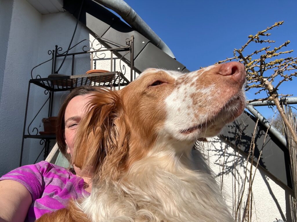 Zuletzt hatte sie aber doch Interesse an dem, was die Nachbarschaft so machte und sass dann auf meinem Schoss und hielt die Nase in den Wind.