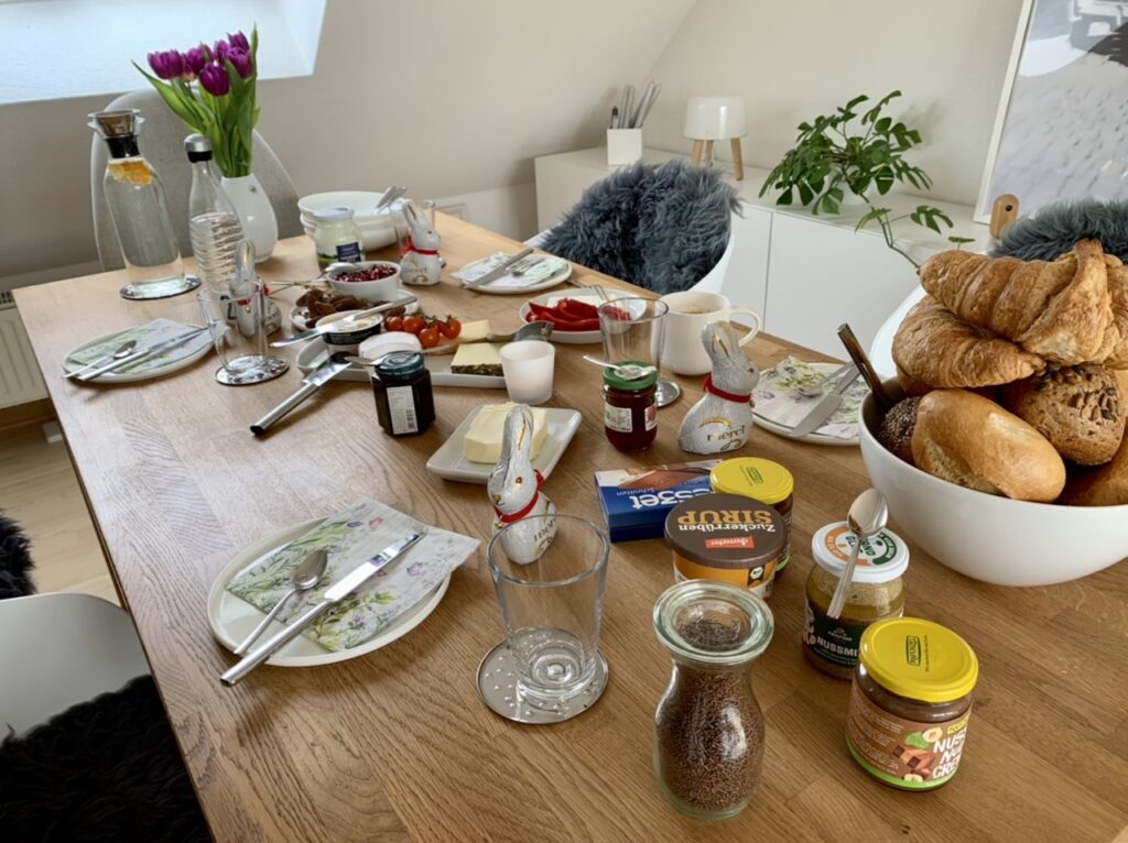 Eigentlich wollten wir auswärts frühstücken gehen. Wir hatten gedacht, die Coronazahlen sinken oder wir können draussen sitzen. Aber beides war ja nicht so der Fall und so haben wir uns bei mir getroffen.