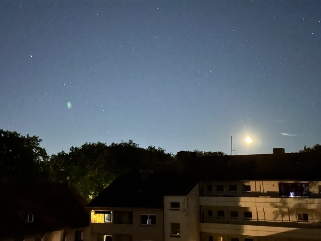 Auf dem Heimweg war ich total beeindruckt, wie groß der abnehmende Mond zu sehen war. Gefühlt riesig groß hing er da oben am Himmel und begleitete mich nach hause.