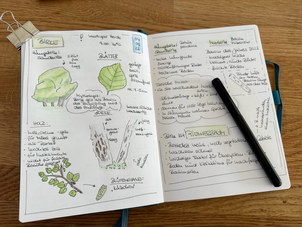 So hab ich auch den frühen Morgen in der Westruper Heide dafür genutzt, mich dort mit meinem Nature Journal niederzulassen und diese Birke zu erforschen.