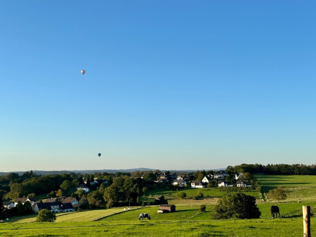 Am Abend haben wir einen tollen legalen Stellplatz im Bergischen gefunden. Mitten in der Natur mit tollem Ausblick und einem fleissigen Specht über uns. Die Heissluftballone gab es dann noch als Zusatz oben drauf.