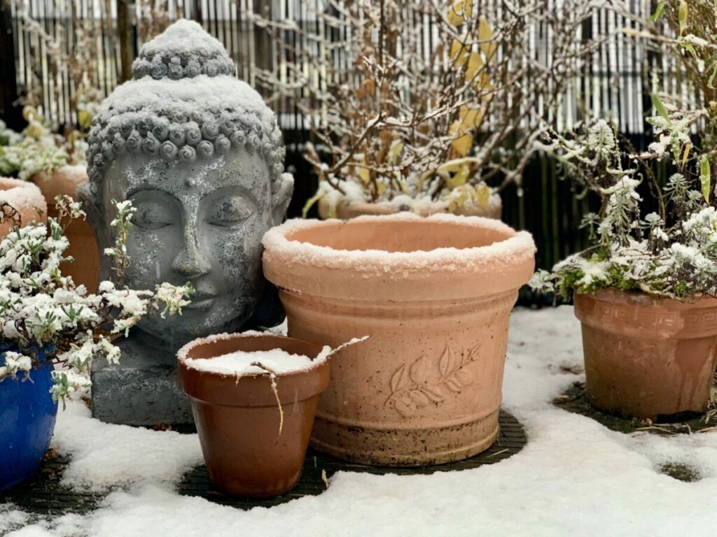 Und auch auf der Terrasse zuhause hatte sich eine kleine Winterlandschaft gebildet.