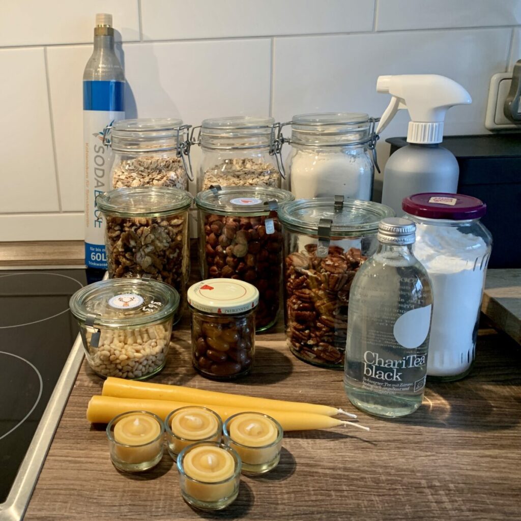 - Ein Besuch im Unverpacktladen. Jetzt sind meine Vorräte wieder gefüllt! Und weil noch ein kleines Glas frei war, da es ein gewünschtes Produkt grad nicht gab, hab ich mir spontan ein kleine Portion Zimt-Schoko-Mandeln gegönnt. Darauf freu ich mich schon!