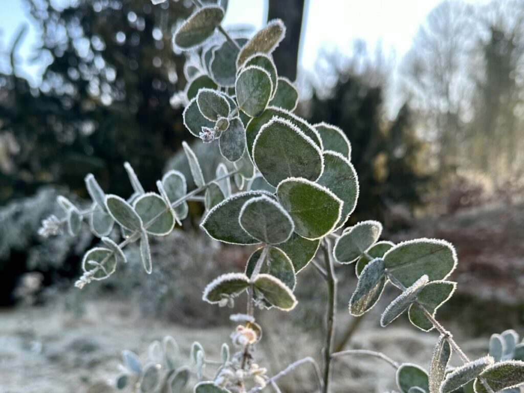 Auch auf dem Gingko zeigte sich hübscher Rauhreif-Schmuck.