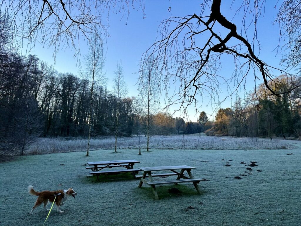 Die Picknick-Tische waren voller Rauhreif und ich konnte mir gar nicht vorstellen, dort bald wieder in kurzen Hosen zu sitzen.