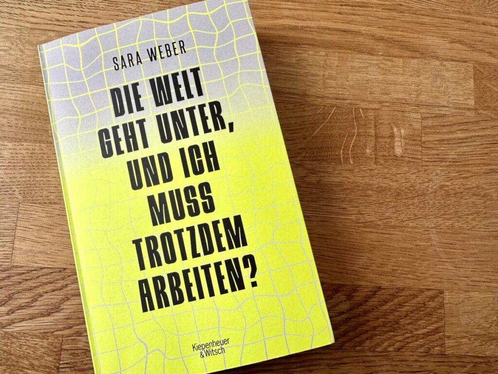 Ich hab diese Woche das Buch „Die Welt geht unter, und ich muss trotzdem arbeiten?“ von der Journalistin, Autorin und Digitalstrategin Sara Weber gelesen. In dem Buch analysiert sie die aktuelle Arbeitswelt, stellt alte Zöpfe in Frage sowie Ungerechtigkeiten dar und erklärt, warum immer mehr Menschen in diesen Strukturen nicht mehr arbeiten wollen.
