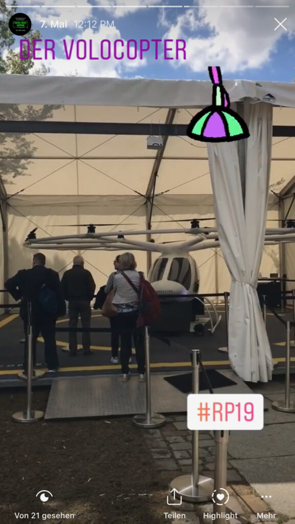 Außerdem hab ich ein Flugtaxi, den Volocopter*, in echt gesehen und ich bin eScooter gefahren.