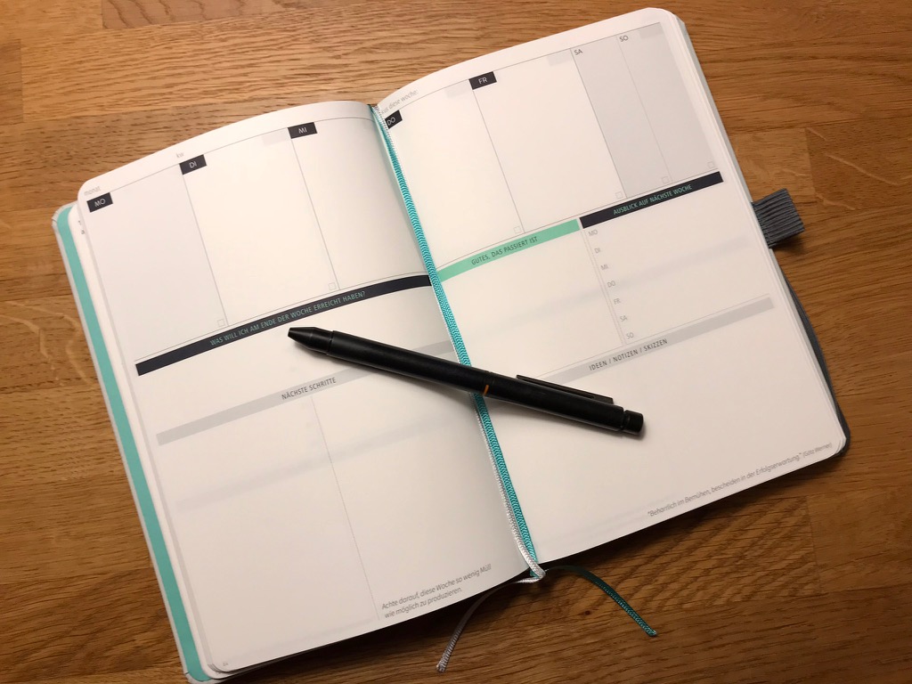 In der Vergangenheit hatte ich meinen Kalender immer elektronisch geführt. Damit war ich lange zufrieden. Zuletzt hat es mich aber genervt, dass man den elektronischen Kalender bis zum Anschlag mit Terminen vollpacken kann ohne dass irgendetwas mal meldet, dass es jetzt reicht. Ich habe so oft die Übersicht verloren und mir die Woche viel voller gepackt, als es eigentlich gut war. Und daher bin ich im Oktober wieder zu einem Papierkalender gewechselt, um dort wieder mehr Übersicht zu haben.
