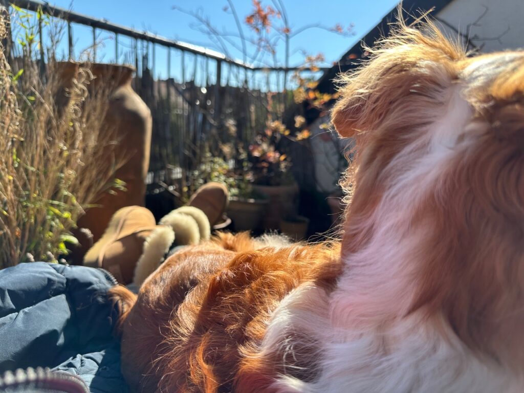 - Am Wochenende noch mal im Liegestuhl auf der Terrasse sitzen zu können. Lise hat sich dazu gesellt und wir haben zusammen die angenehme Wärme der Sonne genossen.