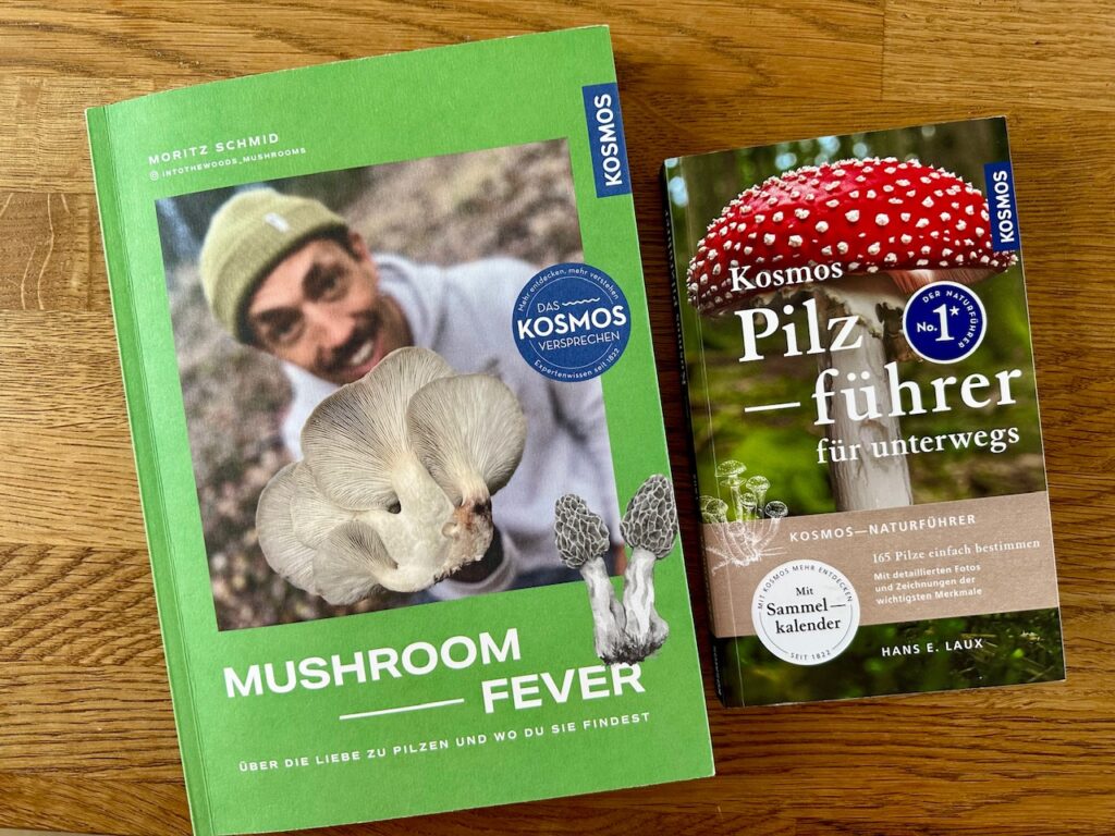 Und weil mich das Thema Pilze so fasziniert und ich auch Lust habe, sie näher kennenzulernen, habe ich mir noch ein Pilz-Bestimmungsbuch zugelegt. So besitze ich jetzt zwei Bücher zu Pilzen: Einmal das Buch „Mushroom Fever“ von Moritz Schmid, das mir die Faszination zu den Pilzen eröffnet hat (es enthält liebevolle Portraits zu 20 ausgewählten Speisepilzen). Und mit dem „Bestimmungsbuch“Kosmos Pilzführer für unterwegs“ habe ich nun auch ein Exemplar, mit dem ich draussen die jeweiligen Arten bestimmen kann. Ich freu mich voll!