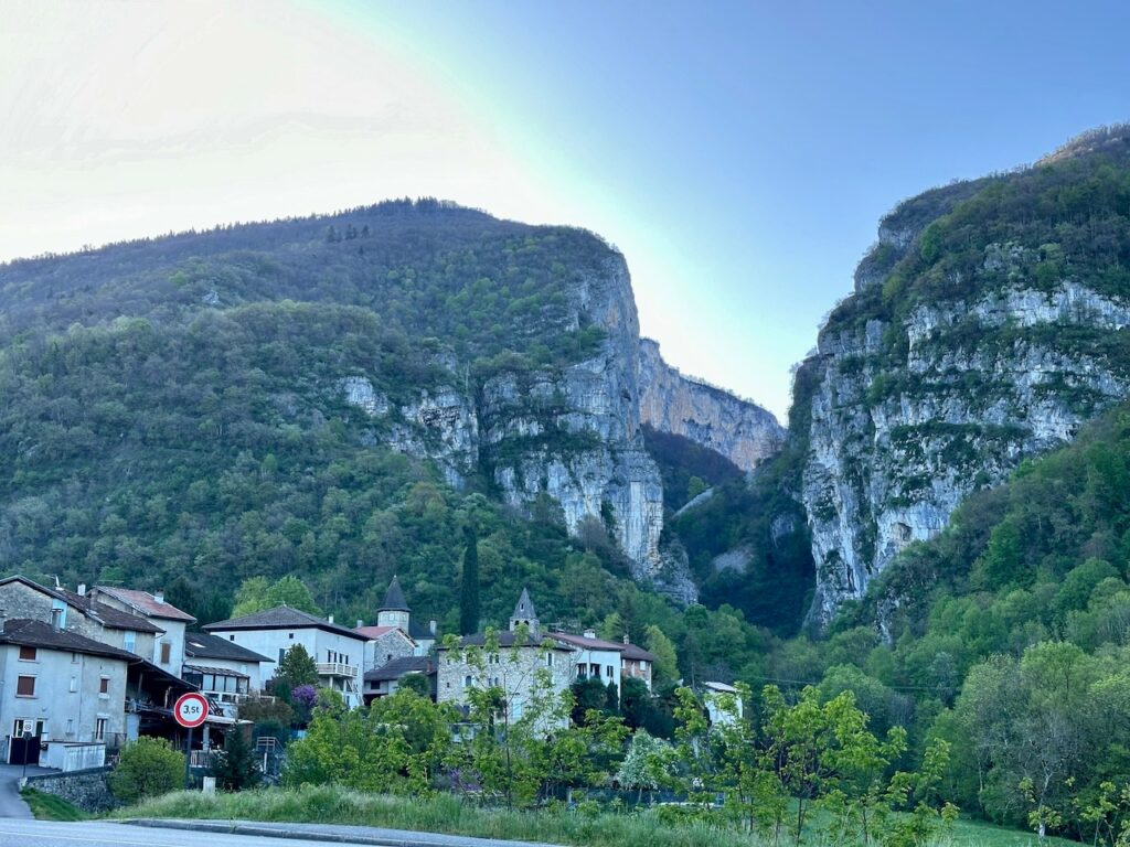 Ich hatte entschieden, diesmal nicht die langweilige Autobahn in den Süden zu nehmen, sondern über die Nationalstraßen zu fahren. Insofern führte mich mein Weg durch`s Jura, was mich total begeistert hat! So eine wunderschöne Landschaft: hübsche Dörfer und idyllische Berge. Toll!