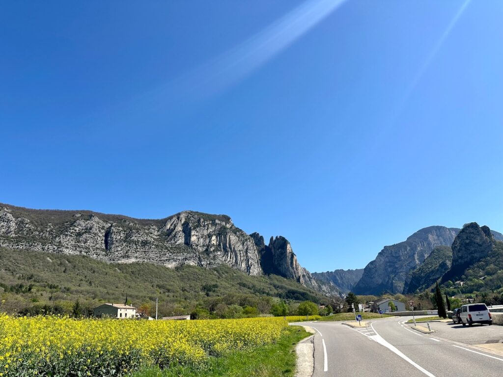 Auf dem Weg dahin fuhr ich durch die Drôme, die ich ebenfalls wunderschön finde. Sie liegt nördlich der bekannten Provence-Provinz Vaucluse und fühlt sich schon sehr provençalisch an. Auch hier finden sich jede Menge Lavendelfelder, die jetzt aber natürlich noch nicht blühen. (Wenn du blühenden Lavendel sehen willst, schau gerne in meinen Reisebericht aus der Provence vom letzten Jahr.)