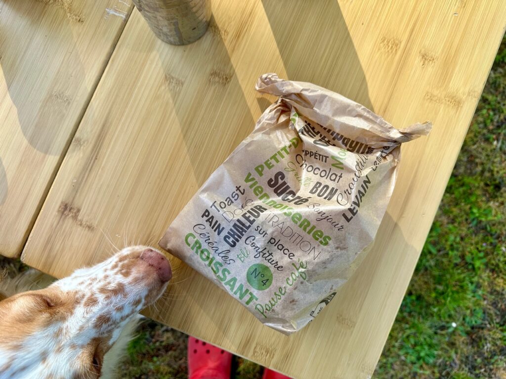 - Beim Croissant-Kauf in Frankreich wieder die typisch französische „Verschlussart“ der Tüte zu bewundern