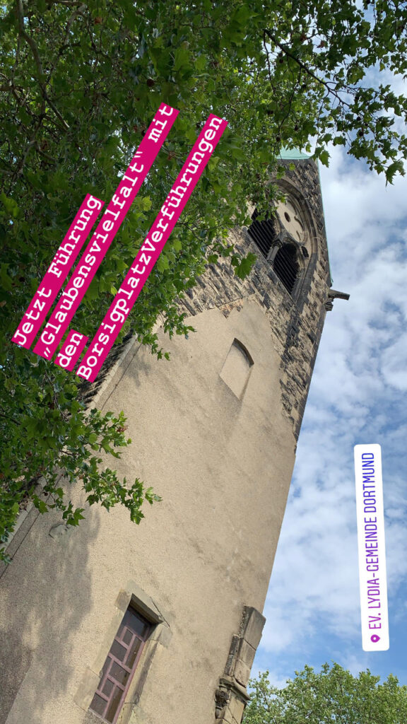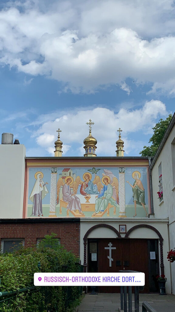 Um 15 Uhr ging es dann weiter mit der Patenkindfamilie. Ich hatte uns für eine Führung der BorsigplatzVerführungen angemeldet. Thema war „Glaubensvielfalt“. Es ging durch die Dortmunder Nordstadt, erst zu einer aussergewöhnlichen evangelischen Kirche, dann in eine russisch-orthodoxe Kirche und zuletzt in eine Moschee. Das war sehr spannend und hat auch den Kindern viel Spaß gemacht.