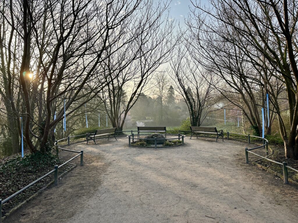 Im Rombergpark gibt es dieses Frühjahr wieder eine schöne Aktion: Dort hängen an verschiedenen Stellen blaue Streifen in den Bäumen, auf denen zu lesen ist, was Menschen mit dem Frühling verbinden.