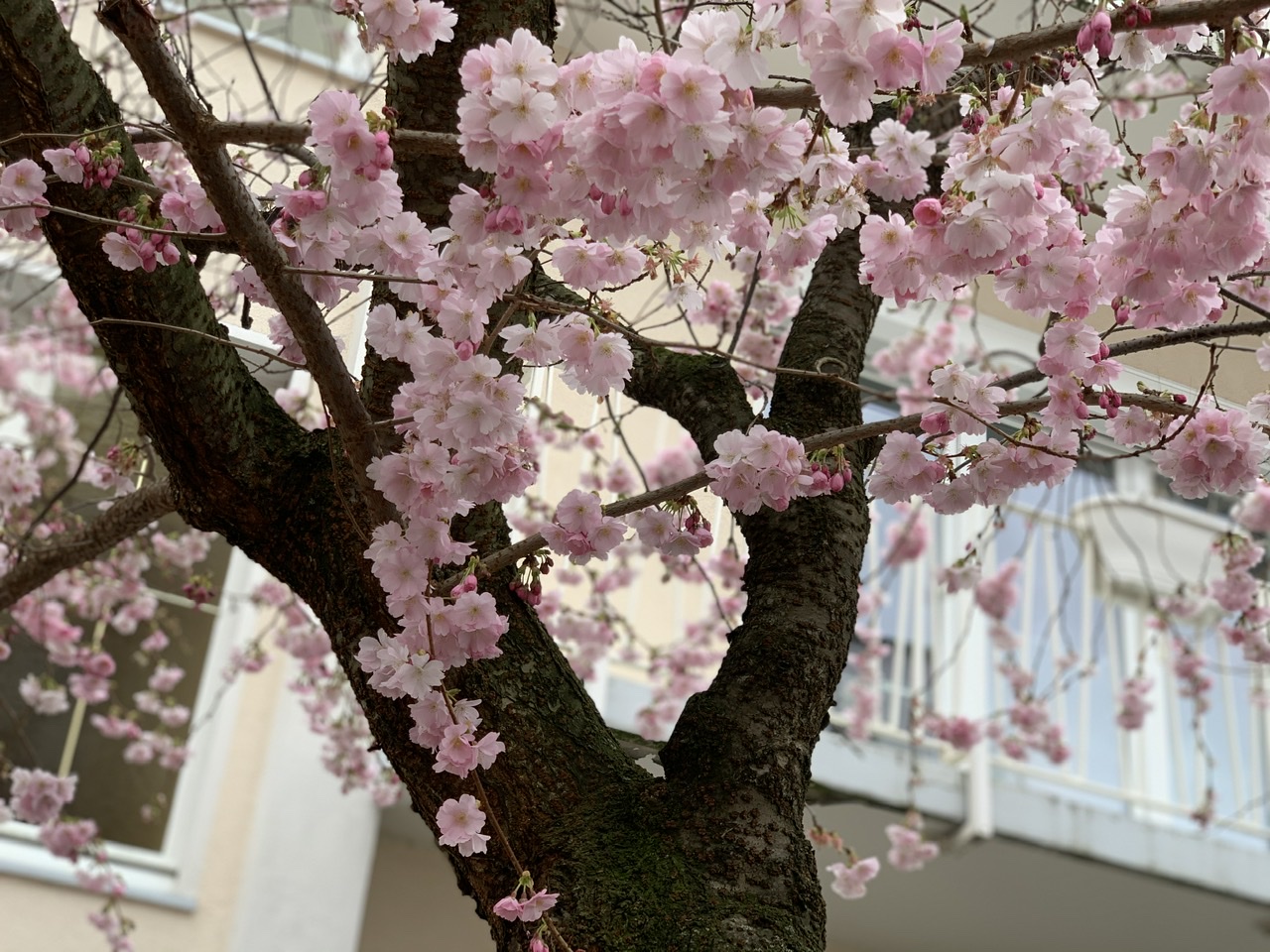 Am Sonntag habe ich mich noch mit ein paar Leuten zum Frühstück getroffen, mit denen ich früher eine Veranstaltung organisiert hatte. Das fand ich wie immer sehr schön und launig. Leider habe ich es verpasst, dabei ein Foto zu machen. Aber auf dem Weg dahin habe ich ein Bild von blühenden Kirschbäumen gemacht, das Du im Titel siehst.