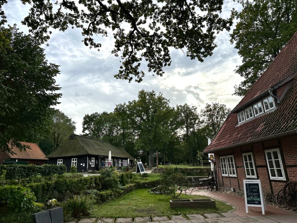 An unserem Zielort Wilsede sind wir dann zum Mittagessen eingekehrt. Wilsede ist ein hübscher Ort mitten in der Lüneburger Heide, der autofrei ist und dadurch ein ganz besonderes Flair hat. Mittlerweile hatte es sich ziemlich zugezogen, aber wir sind trocken geblieben, das war die Hauptsache.