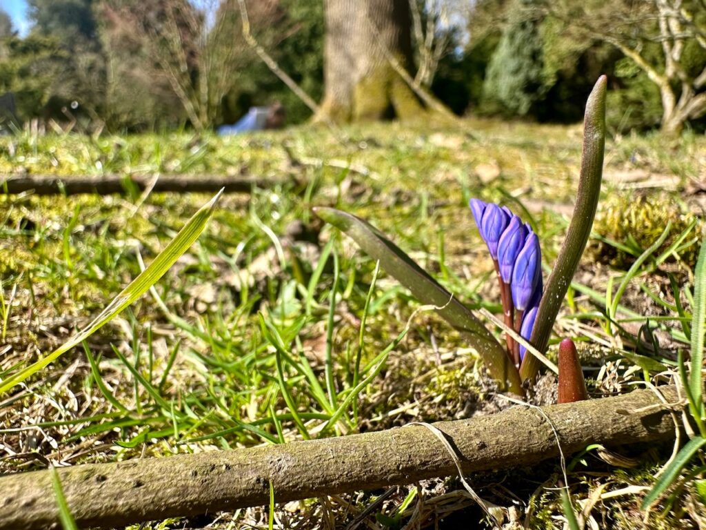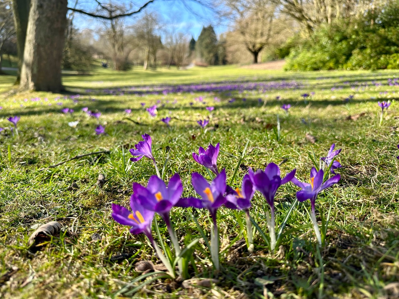 Unsere Gruppe machte sich auf den Weg durch den Park, um einen guten Spot für das Journaln von Frühlingsblühern zu finden. Unterwegs entdeckten wir die Krokusse, die du schon im Titelbild gesehen hast. Wir haben uns aber dann an anderer Stelle niedergelassen. Tatsächlich haben wir uns dann draussen auf die Wiese gelegt und dort die Frühlingsblüher gejournalt. Manche haben sich mit Schneeglöckchen und Märzenbechern beschäftigt, ich hab mich für die Blausterne entschieden, die so hübsch sind, bevor sie aufgehen.