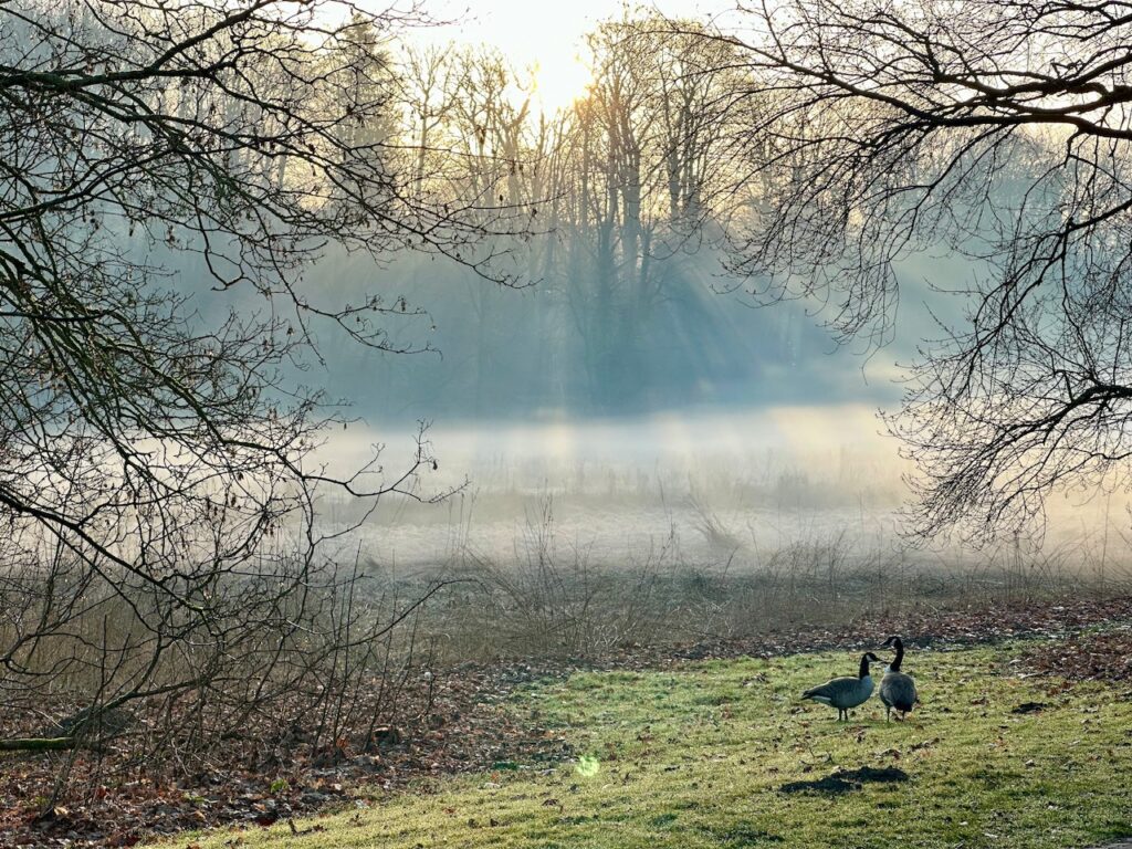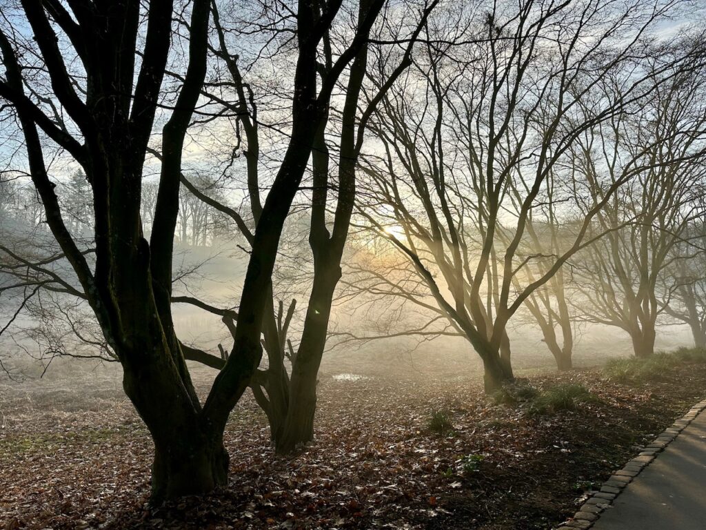 Meine Draussen-Highlights erlebe ich ja ganz oft am frühen Morgen, wenn ich mit Lise die erste Runde gehe. Diese Woche hab ich dir ein paar Impressionen aus dem morgendlichen Rombergpark mitgebracht. Es lag noch Nebel über der großen Wiese, aber die Sonne kam langsam raus.