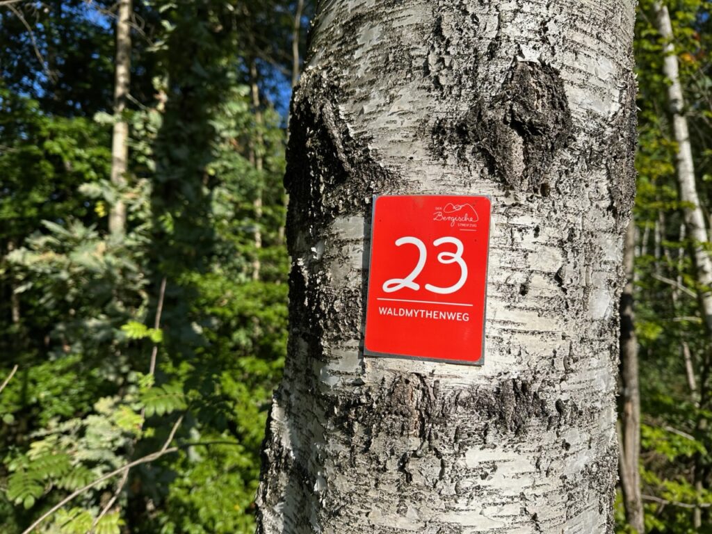 Und danach hab ich mich mit Lise auf den Weg nach Waldbröl zum „Waldmythenweg“ gemacht. Auf dem Weg erfährt man an verschiedenen Infotafeln so einiges über die Mythen des Waldes: Warum überhaupt hat der Wald im deutschsprachigen Raum diese Bedeutung, wie sieht es mit Wolf, Hexe, Einhorn und Co aus? Das fand ich sehr spannend.