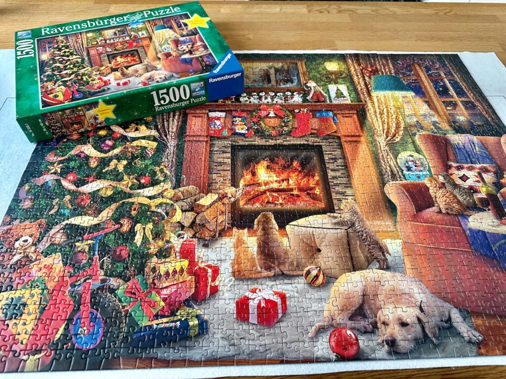 Die Woche hab ich mal wieder ein Puzzle gemacht. Ich liebe es, stundenlang vor diesen Dingern zu versacken und dazu ein Hörbuch oder gute Podcasts zu hören. Viel besser als ständig vor irgendwelchen Bildschirmen zu hocken. 😉 Jahreszeitbedingt gab es ein Weihnachtsmotiv und einen Weihnachtsroman als Hörbuch.