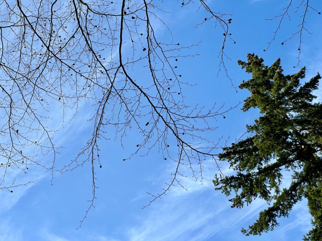Aber wenn man genauer hinsieht, erkennt man doch, dass der Frühling so langsam naht. An den Laubbäumen finden sich schon die Knospen der frischen Triebe.