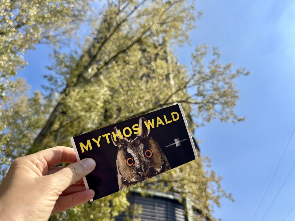 Ich war mit Heike im Gasometer in Oberhausen in der Ausstellung „Mythos Wald“. Die Ausstellung war wirklich toll und es gab dort viel zu entdecken. Die untere Etage war mit zahlreichen fantastischen und großformatigen Fotos bestückt, die die große Bandbreite des Ökosystems Wald zeigen: Von beeindruckenden alten Bäume über große Tiere wie z. B. Wölfe, aber auch Makroaufnahmen kleinster Insekten und vieles mehr. Dazu gab es diverse Exponate zur besseren Anschauung sowie Videos, die das Ganze schön rund machten.