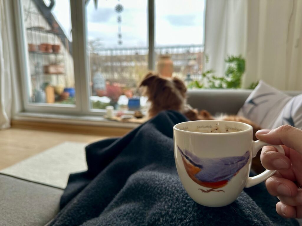Am Sonntag habe ich mich dann mit einem Kaffee auf der Couch platziert und habe so tatsächlich auch „richtig“ an der Stunde der Wintervögel teilgenommen und Vögel gezählt. Dazu habe ich mit meiner Zählhilfe auf dem Schoß schlicht eine Stunde aus dem Fenster geschaut. Ich hatte gedacht, dass das furchtbar langweilig sei. War es aber gar nicht, obwohl ich nur ganz wenige Vögel gesehen habe.